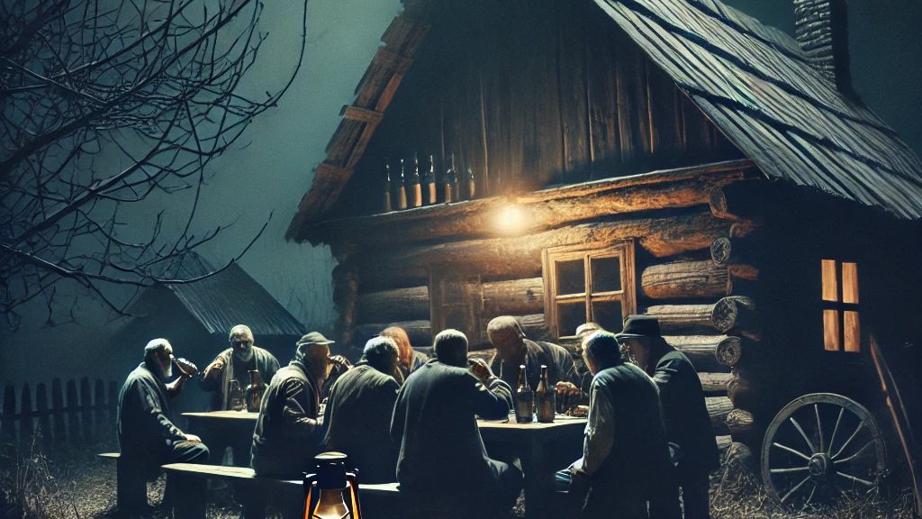Když přijede na chatu, víme, že o klidu si můžeme nechat jen zdát. Hned první večer se objeví jeho „parta“ – stejně jako on, bývalí komunističtí aparátčíci, kteří mají pocit, že svět se pořád ještě řídí podle jejich pravidel. Začne se chlastat, hulákat, hulit doutníky a vyprávět historky, jak „to tenkrát bylo“. A když už mají dost, začnou si hrát na pána celého okolí.