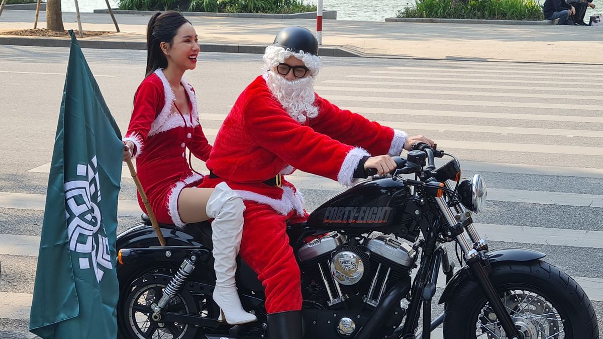 My jsme například potkali kolonu čtyř motorek, které řídil Santa Claus a jako spolujezdkyně měl za sebou spoře oděné modelky, které z motorek rozdávaly drobné dárky kolemjdoucím. Nutno říci, že šlo o velmi sličné slečny a během chvilky bylo kolem motorek tolik diváků, že kolona musela zastavit a pózovat kolemjdoucím.