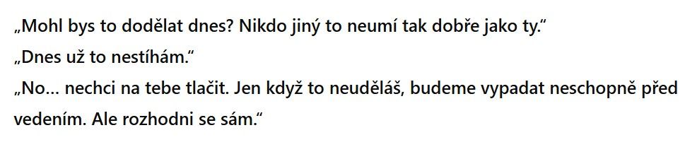 Je užitečné všimnout si ještě jednoho detailu: zdravý člověk zvládne vaše „ne“ bez zloby. Manipulátor ho bere jako zradu. Pokud po vyjádření hranice ucítíte výčitku, urychlený tlak nebo změnu tónu, nevznikla komunikace — ale test, jak snadno půjde ohnout vaše páteř. A právě proto je důležité říkat pravdu včas, ne až po měsících tichého polykání.