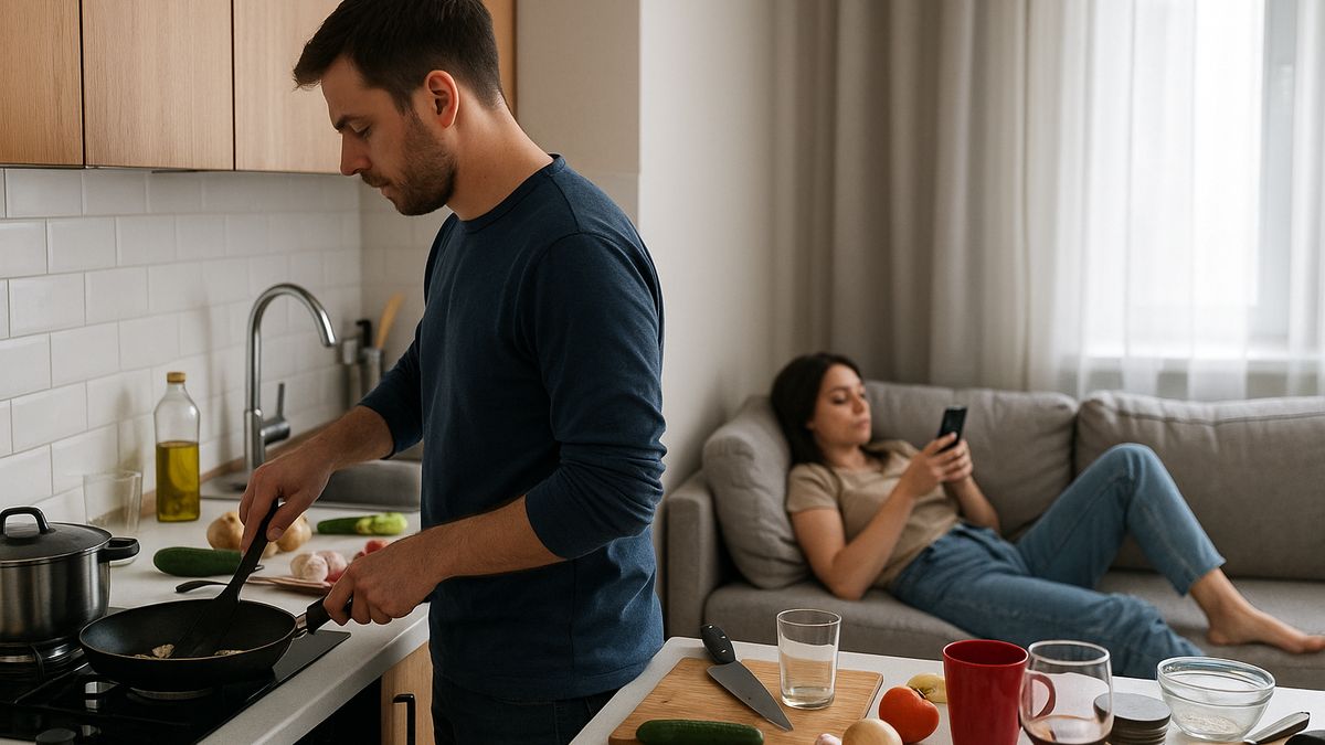 Teď si představ, že by role byly prohozené. Ne jako hypotéza, ale jako realita. On ten, kdo nese domácnost, organizuje život, udržuje chod a plynulost. Ona ta, která přichází domů, usedá do připraveného a považuje to za normální. On ten tichý motor, který nepřestává běžet, protože když povolí, všechno se začne pomalu rozpadat. Ne najednou. Po kouscích. V drobných detailech, kterým se říká „nevšimnutelné“.