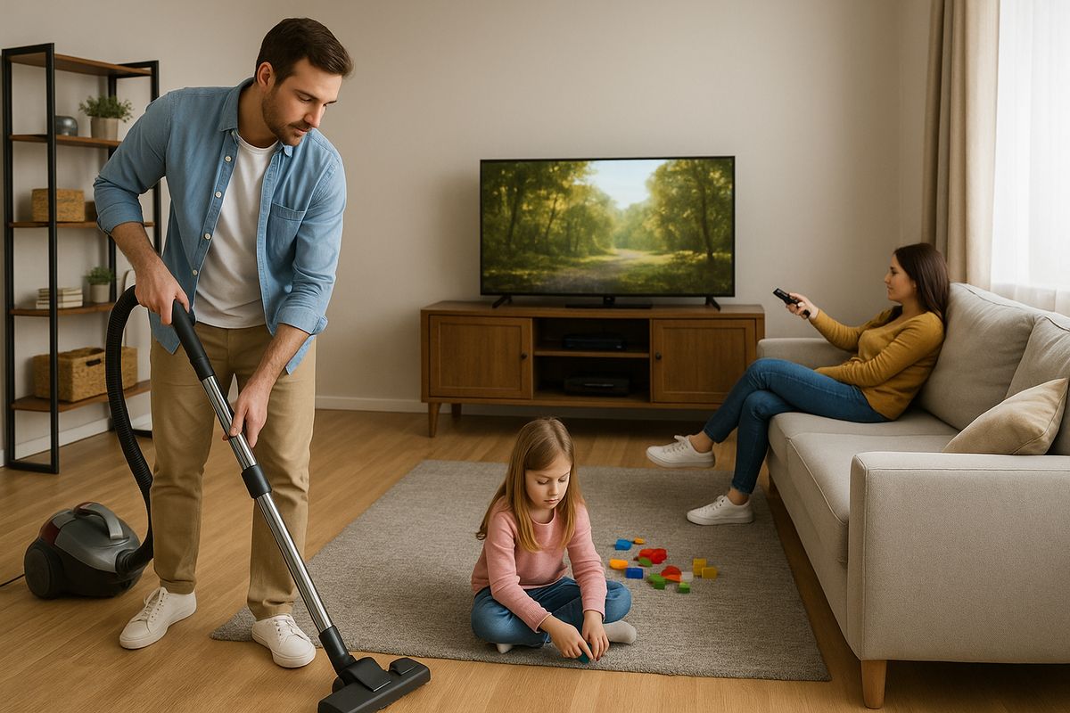Jenže doba se změnila. Život se zrychlil. Do domácností vstoupily notebooky, přesčasy, kariérní cíle, hypotéky, večerní maily, víkendové dohánění práce, únava, která nečeká na pondělí. Ženy dnes pracují stejně jako muži — ale představa, kdo se stará o chod domova, se pořád mění pomaleji než realita. A tak se v mnoha rodinách objevuje nerovnováha, o které se nemluví, protože nebolí nahlas. Bolí v tichu, kde se stává samozřejmé to, co by samozřejmé být nemělo.