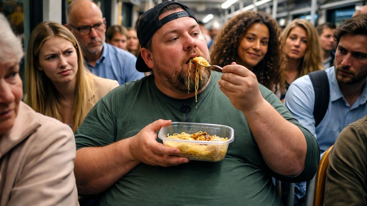 Chlap začal jíst úplně v klidu. Vidlička, sousta, občas si olízl prsty. Vypadal spokojeně. Lidi kolem postupně zvedali hlavy. Někdo se nenápadně odsunul, někdo se snažil dýchat pusou, někdo se tvářil, že je všechno v pohodě, i když bylo vidět, že není.