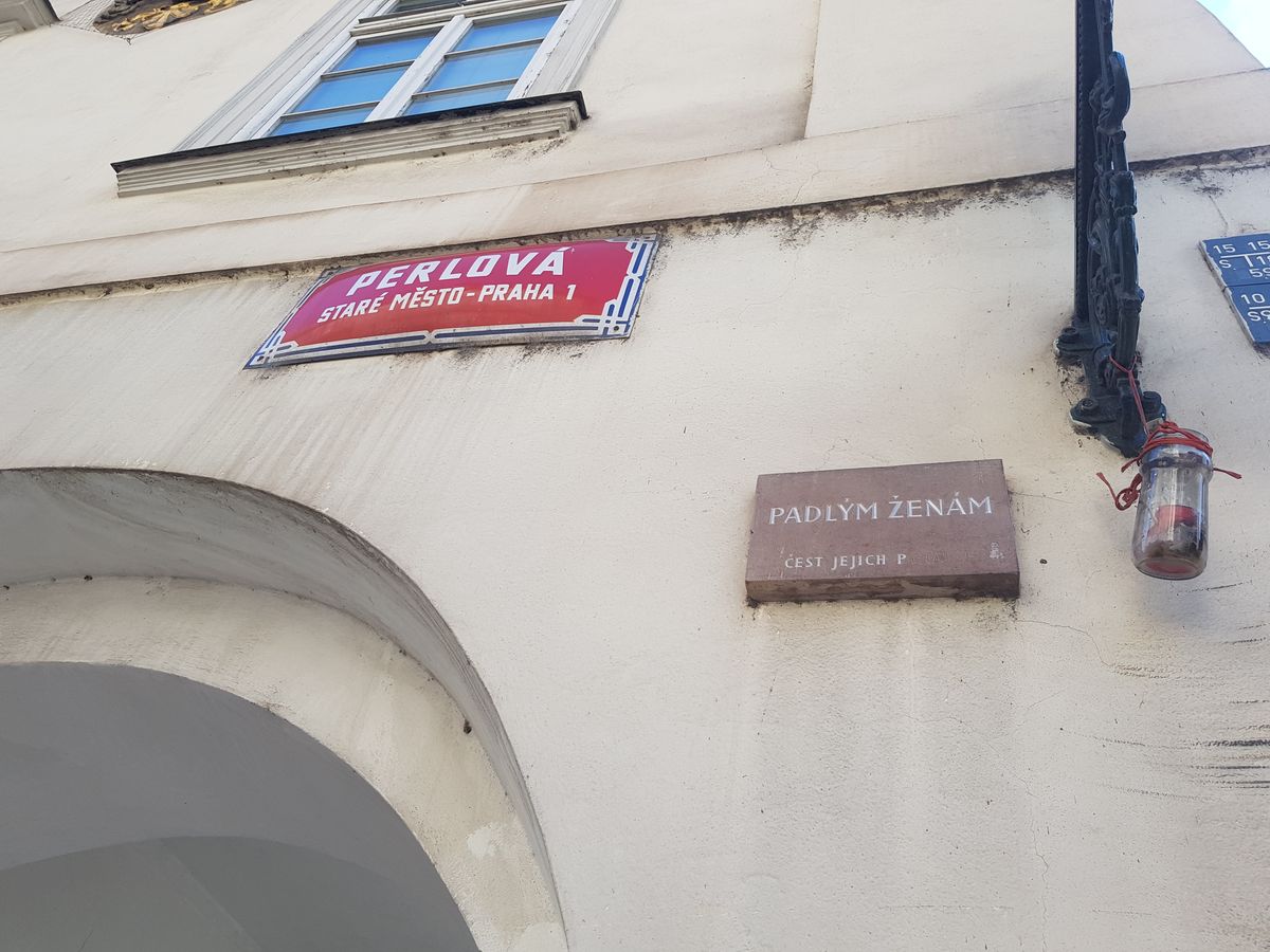 Pamětníkem dob, kdy Perlová ulice patřila kněžkám lásky je pan Cibulka z místního uzenářství, které tu funguje již od roku 1842, kdy obchůdek vlastnili jeho předci. Kolem roku 2010 se na domě uzenáře Cibulky s jeho souhlasem objevila pamětní deska „Padlým ženám“, která je připomínkou nedávné historie, ale také recesí. Stačí si přečíst dovětek, v němž je zvýrazněný pouze text: „Čest jejich p… “.