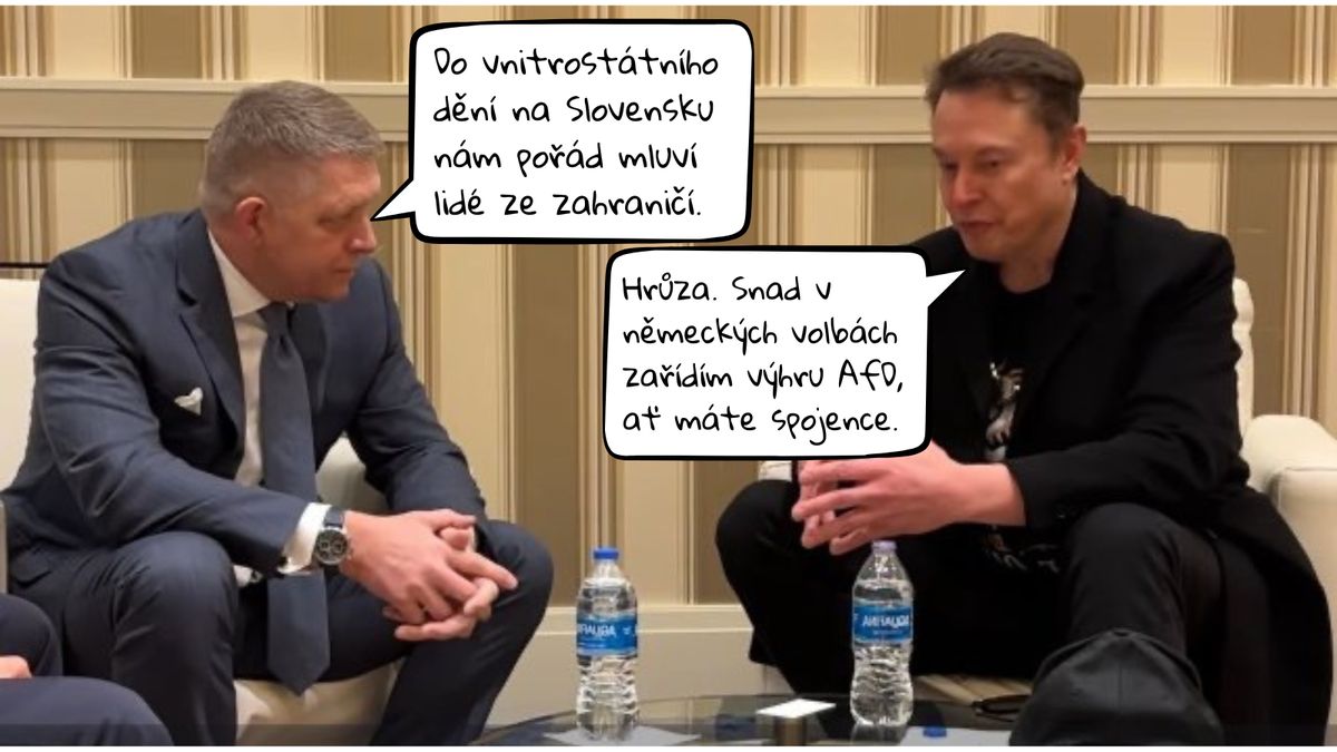 Musk se potkal s Ficem. Zatímco Fico si neustále stěžuje, že se ke slovenské politice vyjadřují Češi, Musk bojuje v německých volbách za AfD.