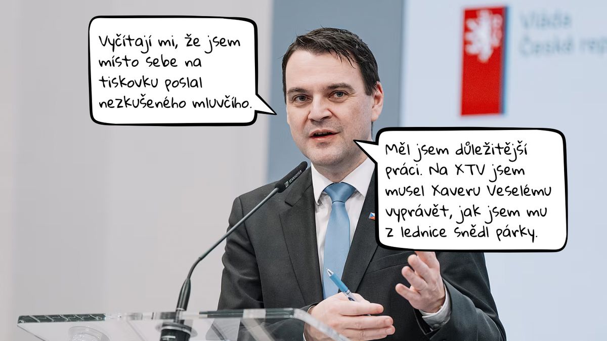 Ministr Macinka za sebe na tiskovou konferenci poslal mluvčího. Adam Čörgő však působil, že mu v této roli není nejlépe. Macinka měl jiné povinnosti.