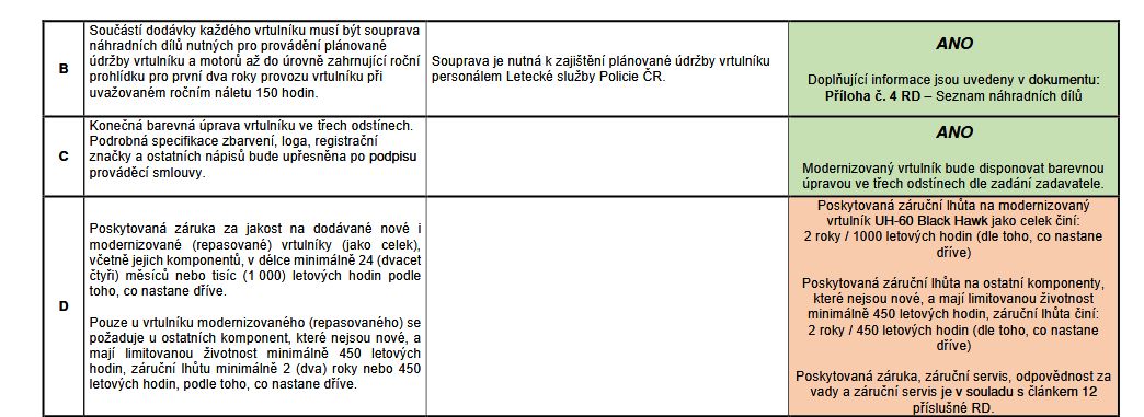 Teprve teď mohu český tendr analyzovat podobně jako ty zahraniční, ale zjištění jsou minimálně nepříjemná. Ministerstvo vnitra Víta Rakušana soutěž vypsalo s tím, že je možné českému státu dodat i repasované vrtulníky, ale dodavatel musí mít servisní středisko v České republice, což většinu potenciálních účastníků diskvalifikuje. Do soutěže se přihlásil i francouzský Airbus, ale stroje z rodiny Super Puma, tedy vrtulníky H215 a H225 jsou poměrně nové a jejich výroba odstartovala teprve v roce 2016. Společnost Česká letecká a servisní a.s. Michala Strnada se do soutěže přihlásila s dodávkou amerických strojů UH-60 Black Hawk, tedy s vývojovou řadou známých vojenských vrtulníků americké armády, jejíž produkce začala v roce 1974 skončila v letech 2004 až 2007. Cena jednoho minimálně 18 let starého stroje s repasovanými komponenty dosáhla 570 milionů korun bez DPH, tedy téměř čtyřnásobku toho, co platili za obdobné stroje Portugalci. Společnost Česká letecká a servisní navíc poskytuje českým hasičům a policistům stejný výcvik u totožné firmy Ace Aeronautics v USA, jaký dostali v ceně i Portugalci. Co ale českému kontraktu chybí, je záruční doba. Portugalci získali 5 let garantovaného servisu na místě v ceně vrtulníků, zatímco Češi mají od společnosti Michala Strnada garantovanou životnost pouhých 450 letových hodin a pokud stroje odlétají méně, servisní garance platí pouhé dva roky. Nové jsou pak na českých strojích jen ty nejdůležitější části, tedy rotory, motory a hřídele. Úředníci Ministerstva vnitra tak nakoupili staré stroje podobné těm portugalským za čtyřnásobnou cenu a získali kratší záruční dobu i méně garantovaných letových hodin.