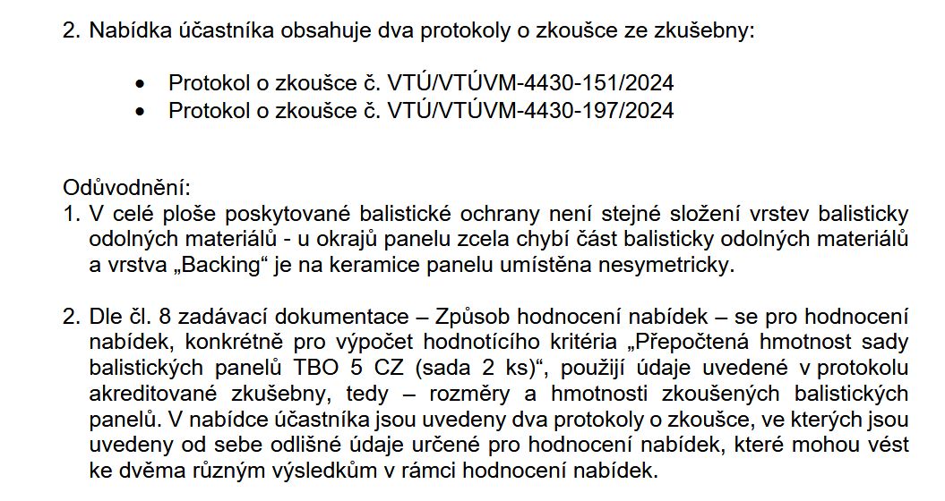 Proč byla zakázka zadána bez dalšího transparentního výběrového řízení firmě z panelového domu, bez historie a s problematickým materiálem? Z uzavřené smlouvy navíc není jasné, zda vesty MKG Defence s.r.o. skutečně prošly novým přezkoušením či nikoliv, protože smlouva odkazuje na budoucí překoušení po dodání materiálu a proti původnímu výběrovému řízení nepožaduje dodání výsledků testů předem - viz článek 5 smlouvy.