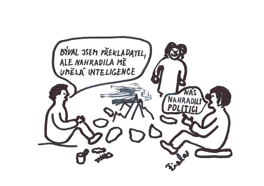 - Býval jsem překladatel, ale nahradila mě umělá inteligence. - Nás nahradili politici.