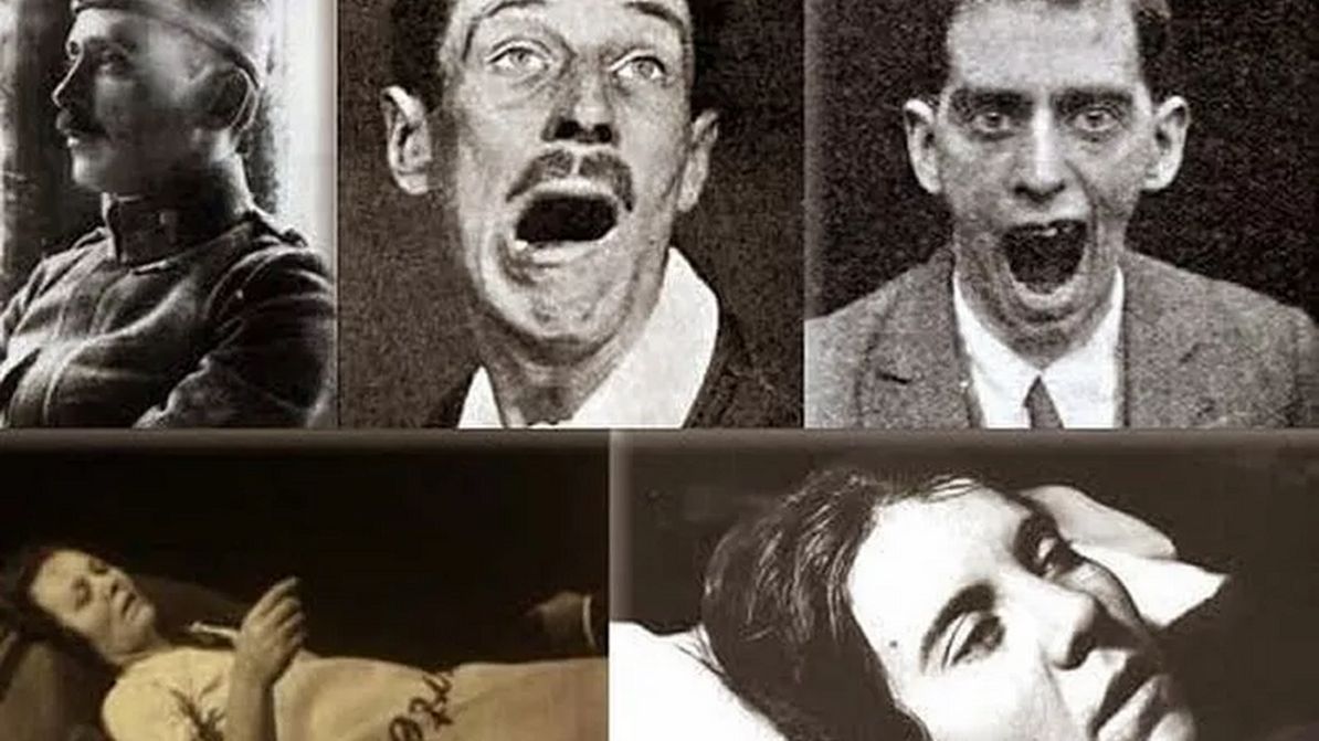 Lékařské právy se opakovaly: horečka, bolesti hlavy, pokles víček, podivná únava… ale pak něco, co se vymykalo. Pacienti přestávali reagovat, jejich těla ztuhla, oči zůstaly otevřené a dívaly se do prázdna. Byli vzhůru – a přesto nepřítomní.