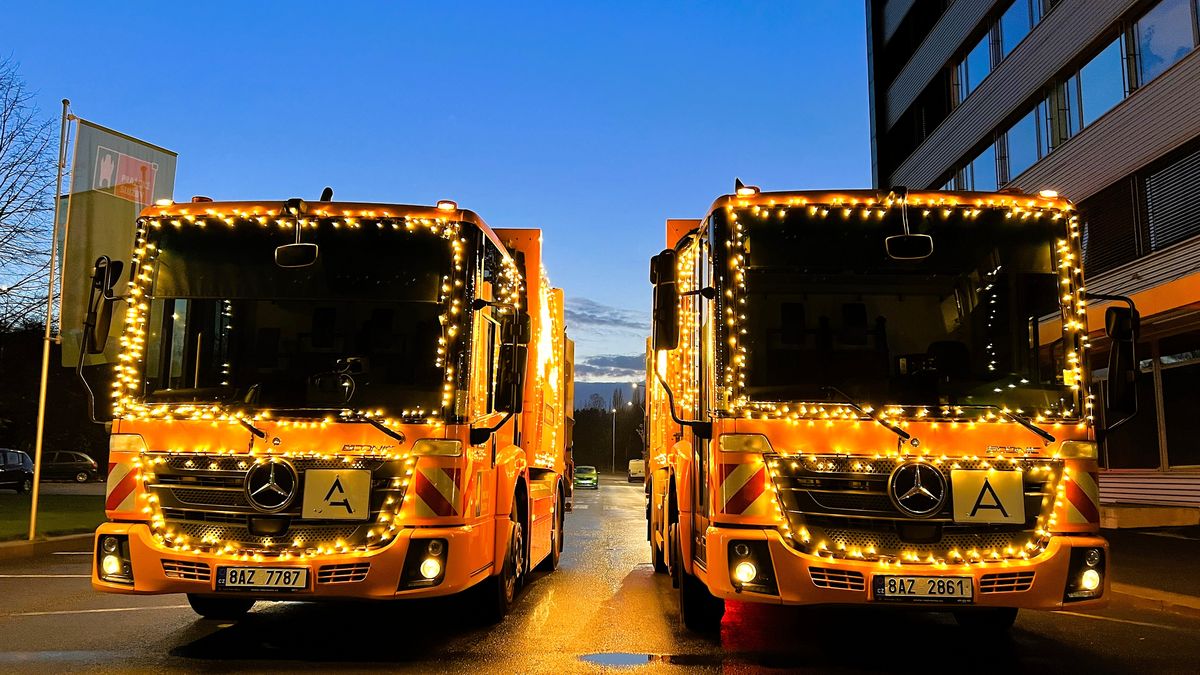 Vánočně ozdobená technika Pražských služeb letos znovu rozzáří metropoli. Dva popelářské vozy značky Mercedes-Benz 1830 GL na CNG pohon vypraví druhá největší městská společnost v neděli 30. listopadu. Až do nového roku je lidé potkají především v historickém centru. První pojede po levém břehu Vltavy, v oblastech kolem Pražského hradu, Hradčan, Starého Města nebo Malé Strany. Druhý pak po pravém břehu, na Starém Městě, okolo Betlémského náměstí, Uhelného či Ovocného trhu a také v lokalitě u Mariánského náměstí.