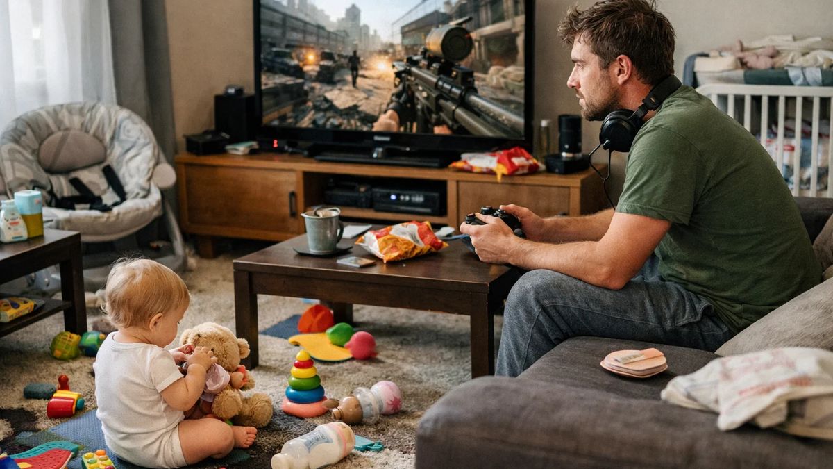 Kdykoliv jsem chtěla uklidit nebo uvařit, Petr mě zastavil: „Nechte to, Lenka to udělá, až přijde. Nedělejte mi tu chaos v mém systému.“ Jeho „systém“ spočíval v tom, že dítě přežije den s minimální údržbou, aby on mohl „expit postavu“ ve hře.