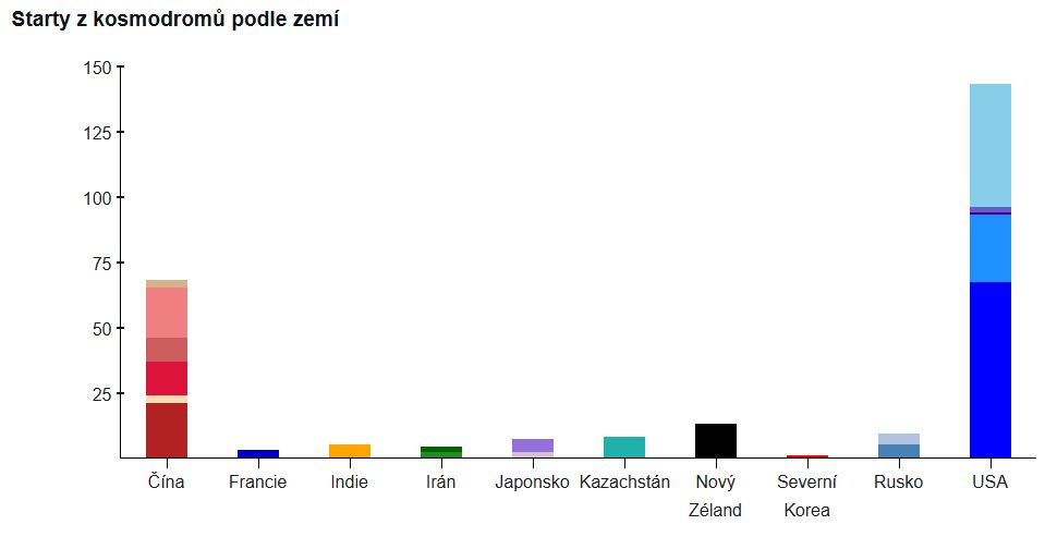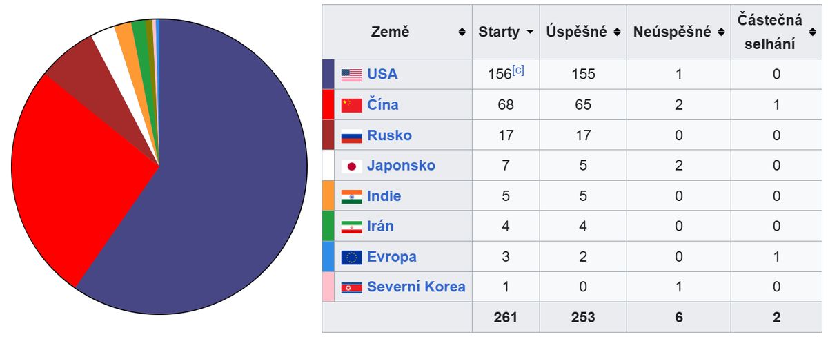 Podíl zemí na startech raket