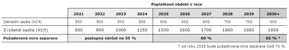 Zároveň je však třeba dodat, že zákon o odpadech ukládá obcím povinnost míru separace postupně zvyšovat. Motivací je mimo jiné postupné navyšování sazeb za ukládání odpadu na skládky. Přehled těchto sazeb uvádí Tabulka skládkovacích sazeb. Zda se Žitenicím podařilo v roce 2025 dosáhnout alespoň hranice 60 %, se dozvíme až z další zprávy o odpadovém hospodářství obce.