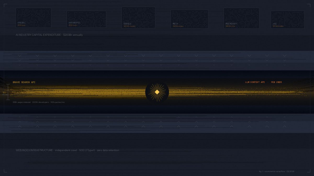 Firmy zabývající se umělou inteligencí investují desítky miliard dolarů do trénování a provozování modelů, ale nemohou fungovat bez aktuálních dat z webu. Tato data jim dodává firma s ročním obratem pod 200 milionů dolarů a s indexem, který vybudovala za zlomek nákladů. Brave nemusel investovat do výpočetních clusterů za miliardy, nemusel trénovat základní modely, nemusel řešit bezpečnost umělé inteligence. Vybudoval infrastrukturu pro procházení webu a index — a teď ho prodává těm, kteří miliardy investovali.