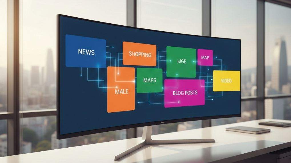 Naver funguje spíše jako vertikálně integrovaný portál než jako čistý vyhledávač. Zatímco Google indexuje primárně externí web a výsledky řadí do jednoho lineárního proudu, Naver agreguje obsah z vlastních platforem (Naver Blog, Café, Knowledge iN, Naver News, Naver Shopping, Naver Maps) i z externího webu do oddělených vizuálních bloků. Uživatel tak po zadání dotazu nevidí „deset modrých odkazů“, ale vertikálně skládanou stránku modulárních sekcí — každá se svým designem, logikou řazení a zdrojem dat.