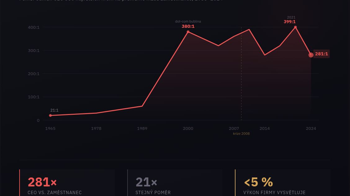 Paradox šéfovských bonusů: 281× víc a nula důkazů, že to funguje