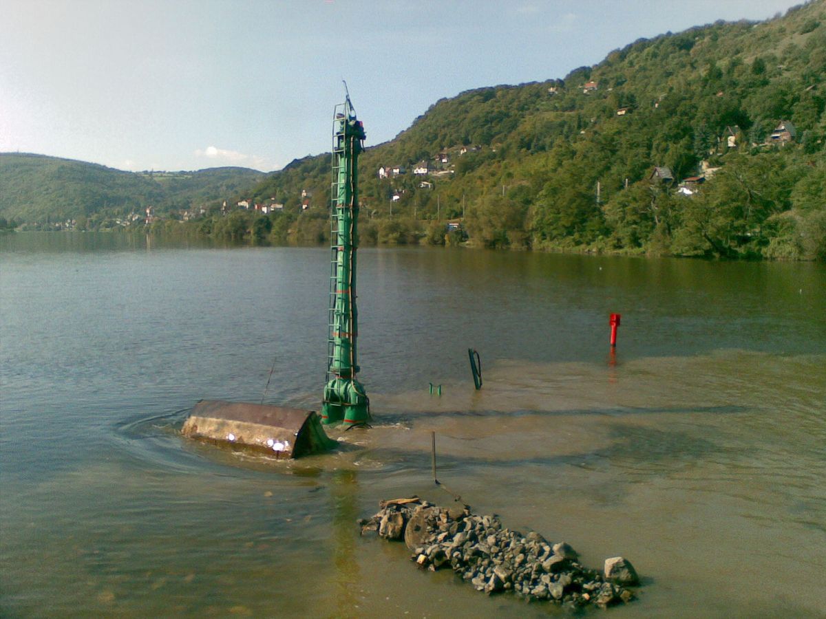 Podvodní bagr při práci nad střekovským zdymadlem