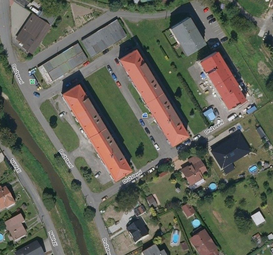 Stejně mohou postupovat i SVJ. Na obrázku níže je vidět typická bytovka na menším městě. Velká sedlová střecha na jihozápad poskytuje prostor pro desítky kWp panelů. Na dvorku je zároveň dostatek místa pro zřízení komunitního wallboxu. Rozúčtování mezi jednotlivé uživatele je technicky možné pomocí čipů. V takovém případě je možné stanovit velice příznivou cenu za kWh například přes den. Komunitní nabíjení pak může danému SVJ významným způsobem zlepšit ekonomiku společné fotovoltaiky.