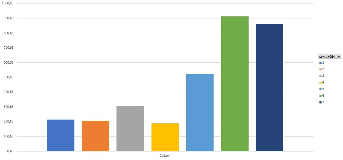 Nabíjení automobilu podle dnů v týdnu - 2025