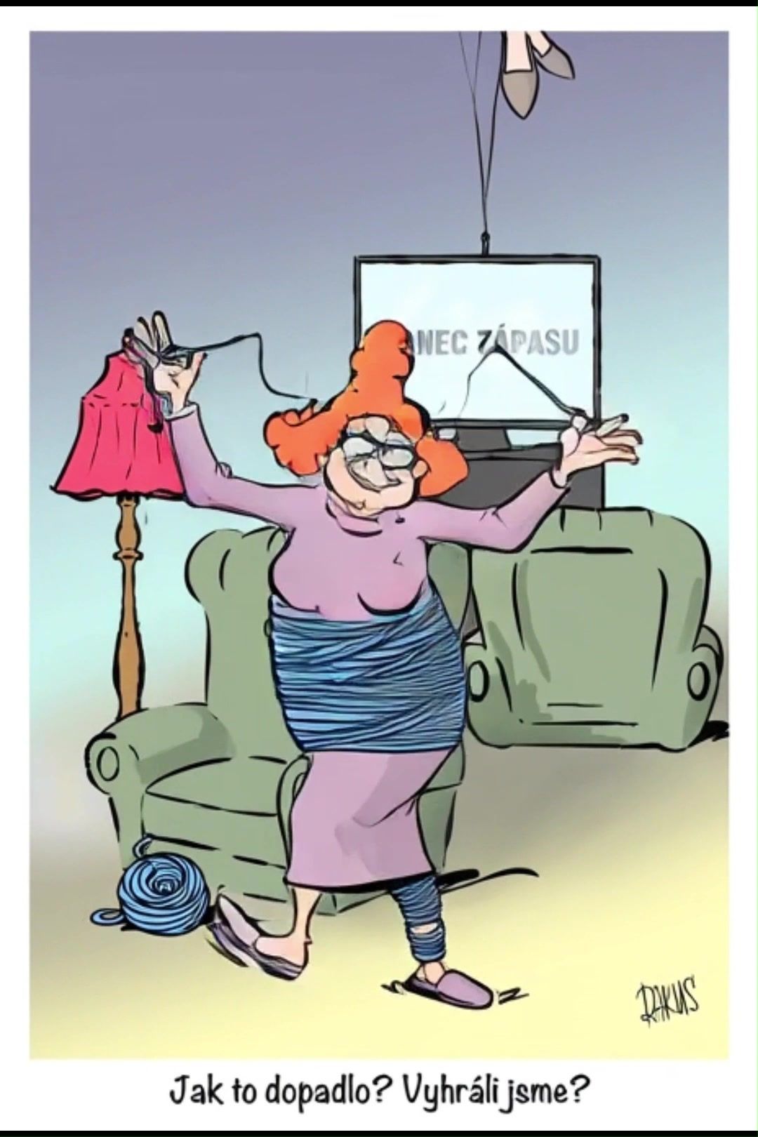Jak to dopadlo? Vyhráli jsme? Animovaný vtip.
