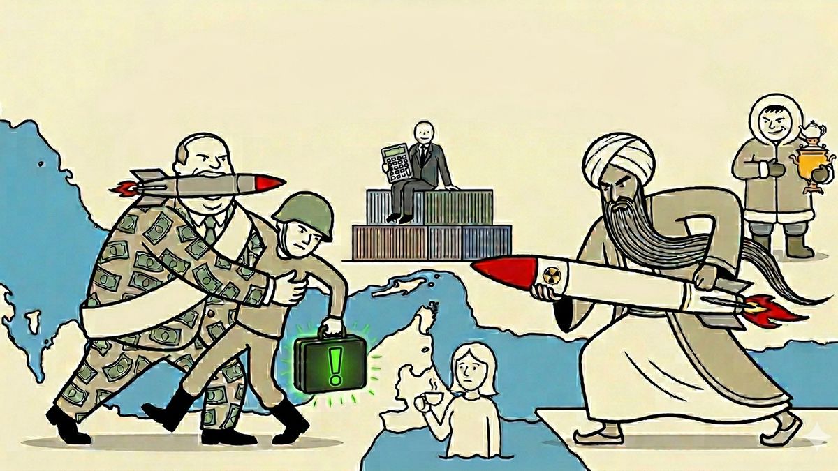 Dovětek pro sebe: „Jen se tam vymažte z mapy, kluci. Ropa letí nahoru a já mám konečně klid na své vlastní ‚operace‘. Tady máte pár jaderných technologií z výprodeje, ať je ta show trochu delší. Čím víc strachu na jihu, tím míň očí na mně.“