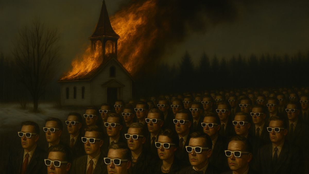 Propagandou zfanatizované davy po sobě řvou přes falešnou barikádu a oba tábory se považují za ten lepší a morálnější.