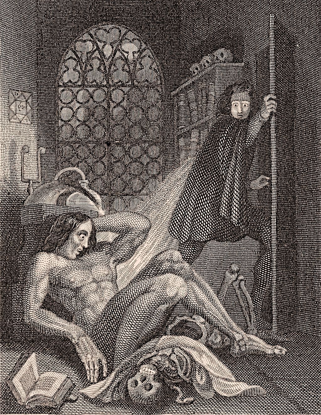 ilustrace z titulního listu románu Frankenstein z roku 1831