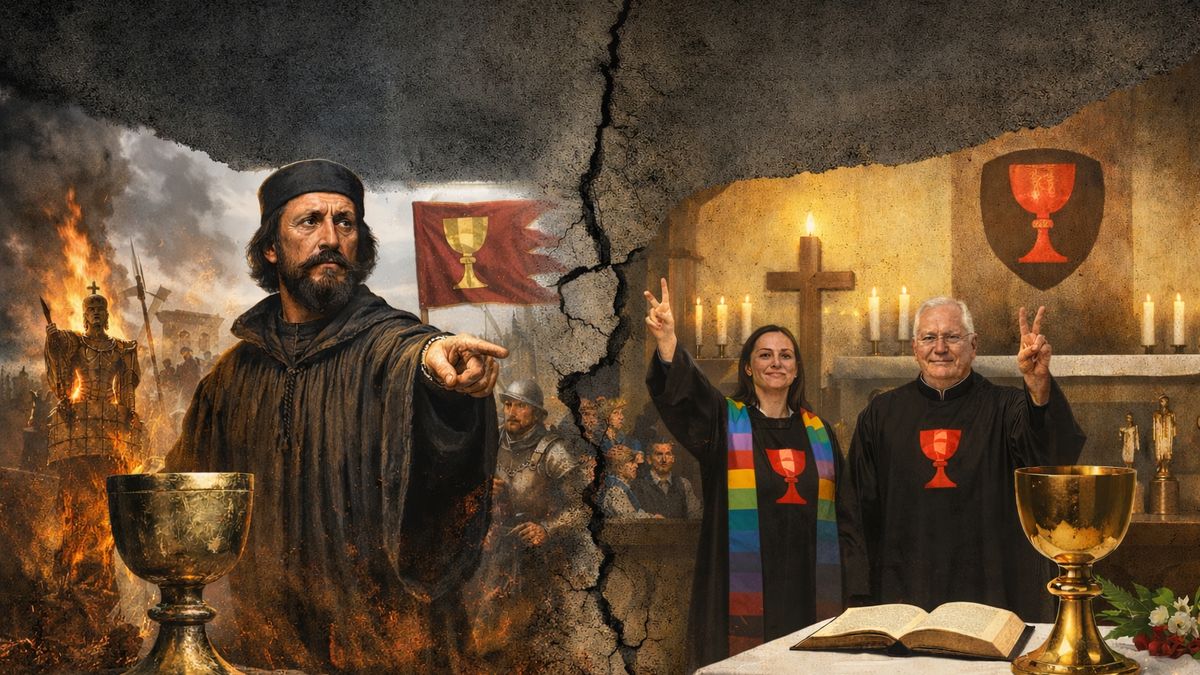 Přestaňme si nalhávat, že by původní husité v dnešní „husitské“ církvi poznali sami sebe. Nepoznali by vůbec nic. Viděli by církev bez kázně, bez jasného učení, bez odvahy říct „tohle je hřích“. Viděli by rozvolněnou morálku, přetvořenou antropologii a pojetí církve, které se řídí spíše duchem doby než Božím zákonem.
