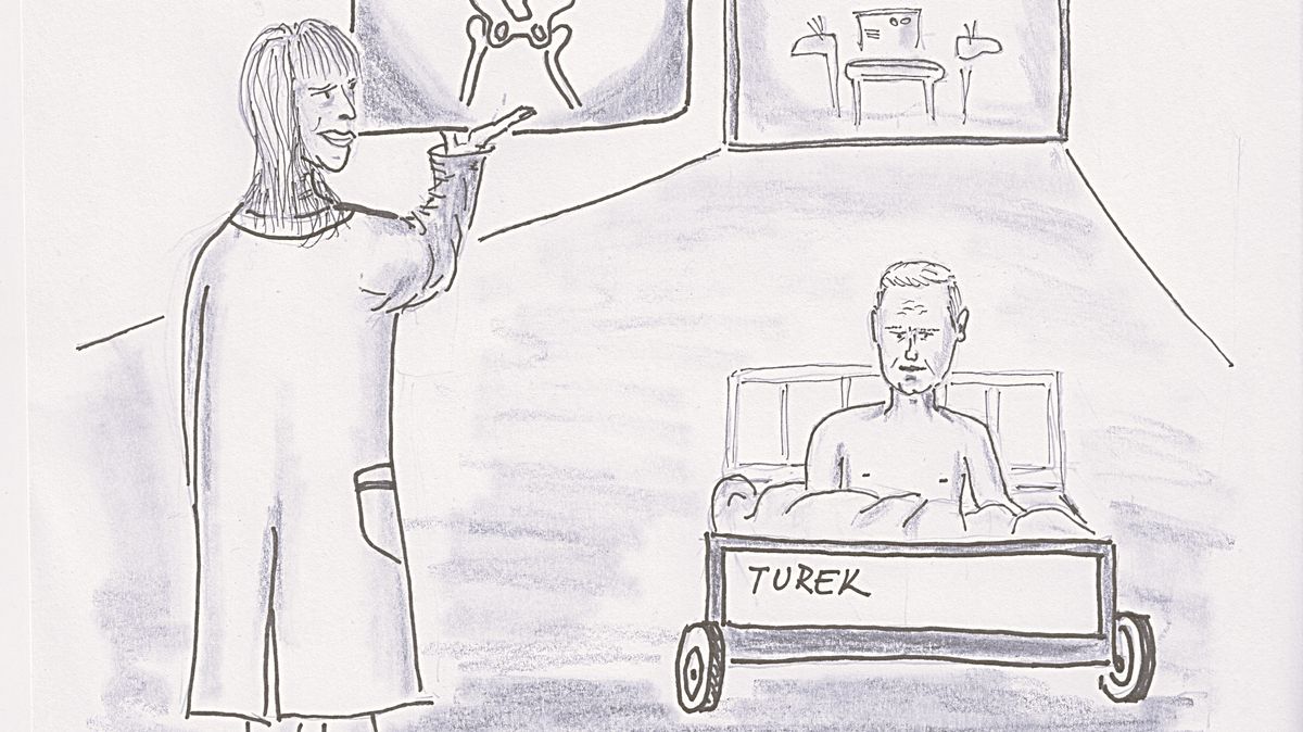 Tak nám, veřejnosti, doktoři zase tají zdraví našich veřejných činitelů. Naše tajná redaktorka, přestrojená za Macinku, si však vyžádala v nemocnici RTG snímky pana Turka. Nemocnice je nejdříve nechtěla ukázat s trapnými výmluvami o ochraně soukromí, ale pak je ukázala, protože se jedná o světový unikát a je škoda to nezveřejnit. No, a tím se to provalilo. Turek nemá páteř a je to venku. Z toho jednoznačně plyne, že šlamastika s páteří byla výmluva, aby nemusel za panem prezidentem, protože ten by ho zmrskal lipovou ratolestí - měl to povolený, Macinka ho žádal být přísný a spravedlivý!