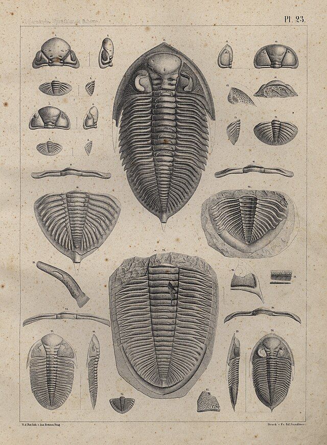 Ještě hlouběji v čase, o stovky milionů let dříve a dávno před dinosaury i amonity, žili tvorové, kteří dnes tvoří jeden z hlavních pilířů české paleontologie – trilobiti. Tito členovci s tvrdým, segmentovaným tělem obývali mořské dno už v prvohorách, konkrétně od období kambria až po devon, tedy přibližně před 540 až 360 miliony let. Jednalo se o velice rozmanité, ale především evolučně úspěšné živočichy. Rozměry se u nich různily od délky několika milimetrů až po desítky centimetrů, složené oči bychom nejlépe přirovnaly k těm, kterými disponují dnešní zástupci hmyzu a tělo bylo tvořeno pevnou schránkou sloužící k obraně. Tu během růstu museli vždy po nějaké době svléknout a i díky tomu se nám o trilobitech zachovalo tolik fosilních záznamů.