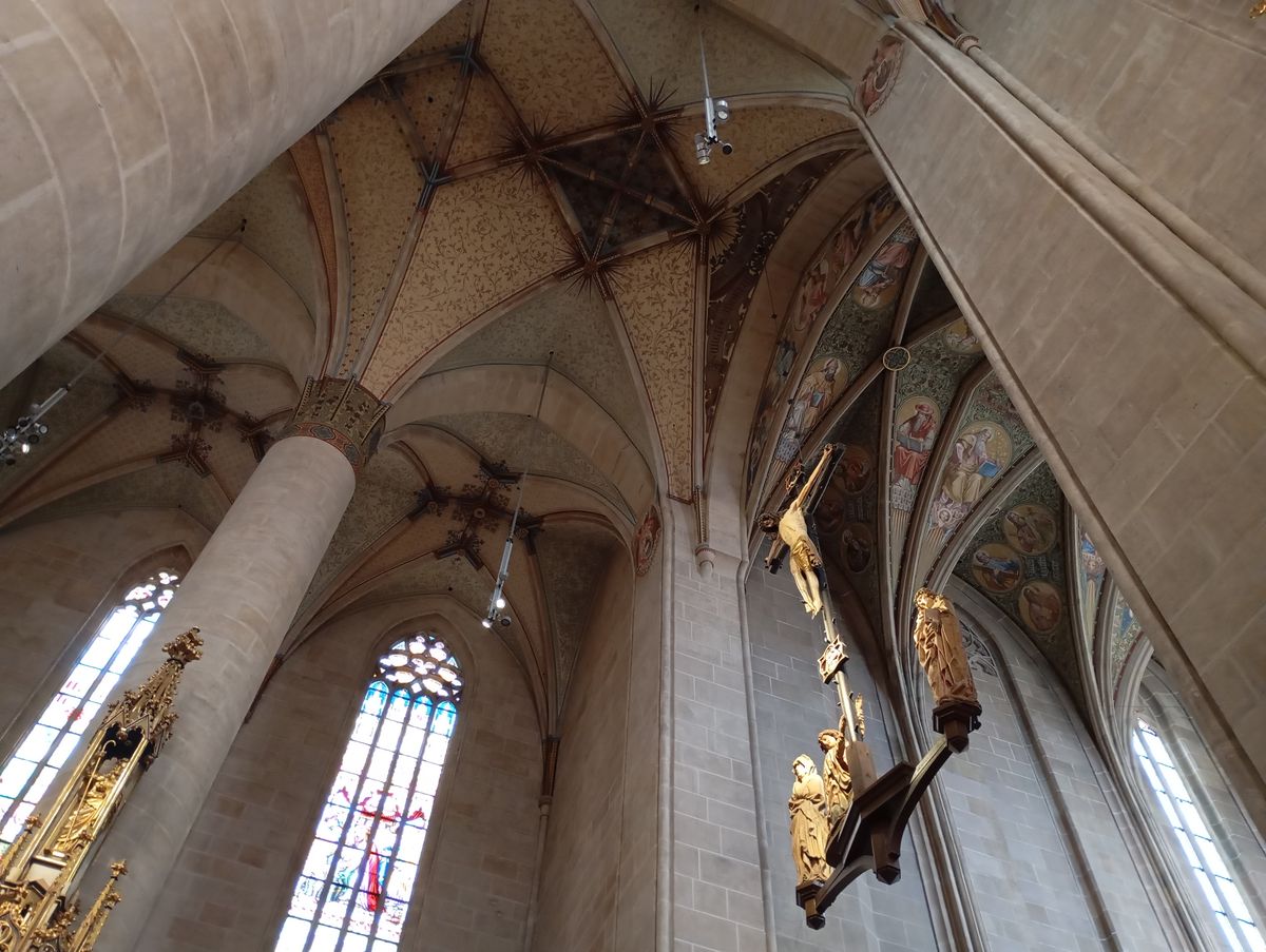 Po prohlídce radnice jsme dumali, kam dál. Lákala mě Měšťanská beseda a katedrála sv. Bartoloměje. Na věž jsem jít nechtěla, tam jsme byli s dětmi také v loňském roce, ale alespoň se nadechnout posvátné atmosféry chrámu, to jsem nám dopřát mohla. Naše babi se navíc přiznala, že v něm nikdy nebyla. Prohlídka byla individuální a zdarma, takže – proč ne? Mimochodem, sv. Bartoloměj má nejvyšší věž v republice. Ovšem jen jednu. Ta druhá byla nedostavěna a uzavřena, proto má dnes poněkud atypický tvar.