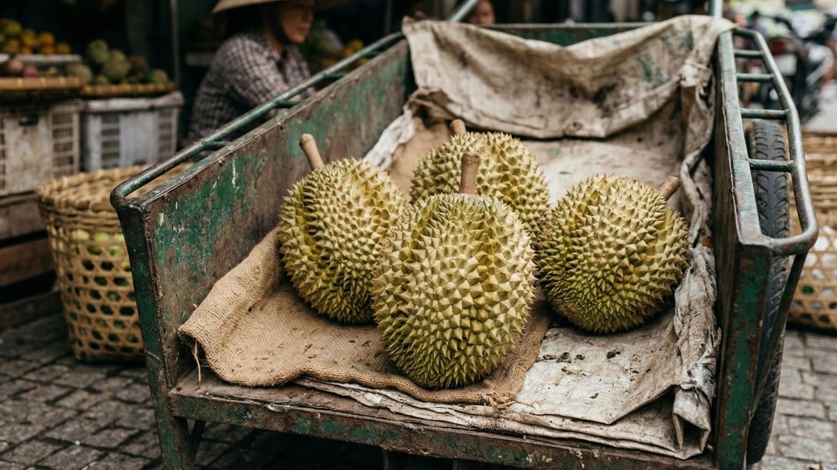 Durian je legenda a patří mezi nejkontroverznější ovoce v Asii. Má tvrdou ostnatou slupku a uvnitř krémovou dužinu. Chuť je výrazná, pro někoho sladká a oříšková, pro jiného těžko přijatelná.