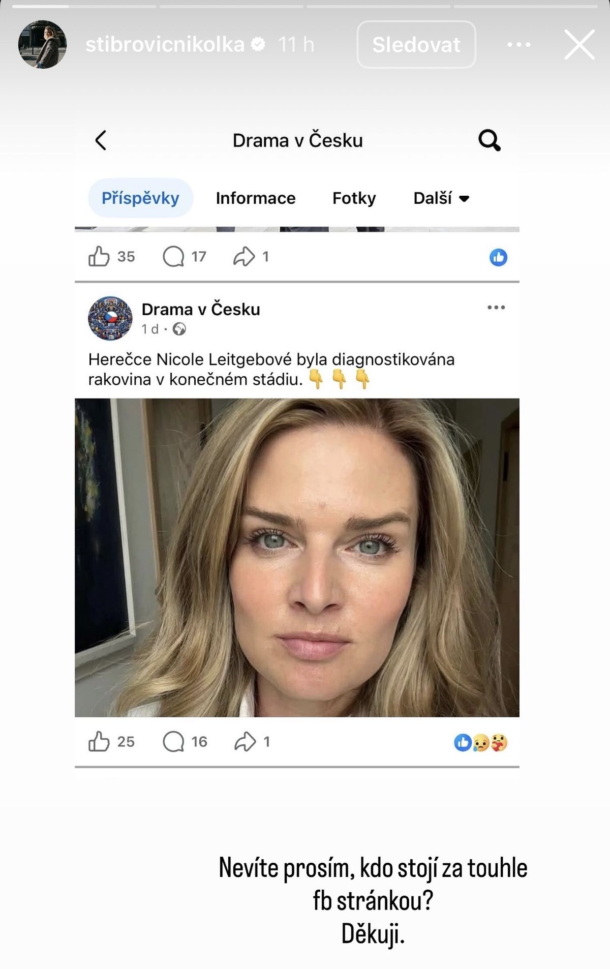 Na sociálních sítích začínají kolovat klamavé informace o známých osobnostech. Poté, co jsem se na facebookové stránce Drama v Česku dočetla, že MMA zápasník Zdeněk Polívka měl spáchat sebevraždu kvůli rozchodu s Lucií Vondráčkovou, jsem narazila na zprávu, že herečce a influencerce Nikol Leitgeb byla diagnostikována rakovina v konečném stádiu.