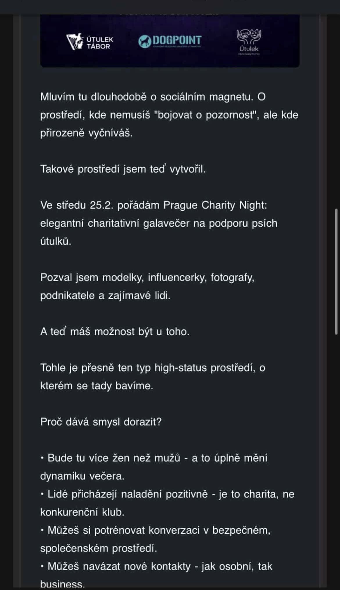 Takhle Ondřej Němec láká na akci Prague Charity Night