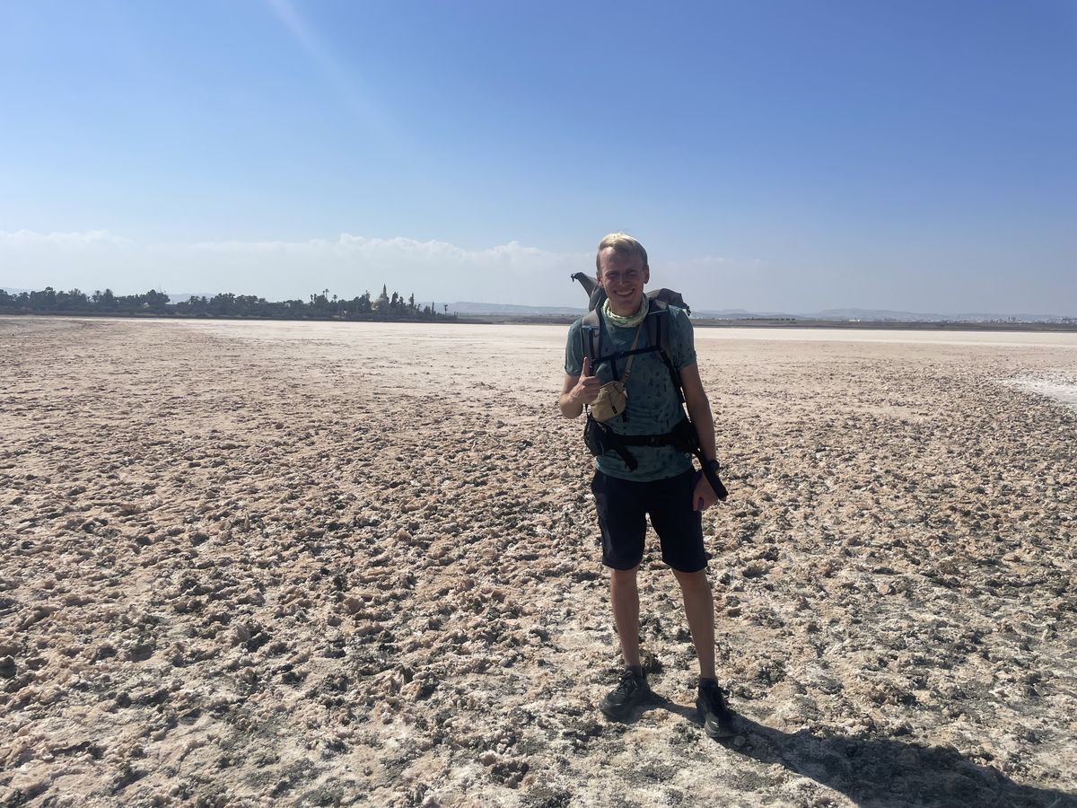 Solné jezero je přes léto vyschlé. Platí zákaz do něj vstupovat, takže fotku jsem si udělal jen na kraji.