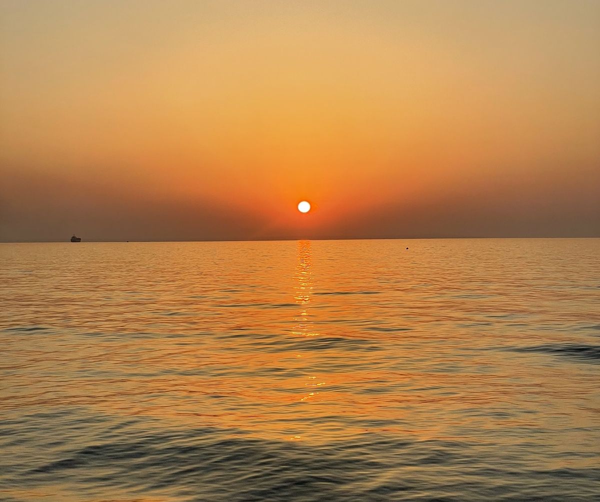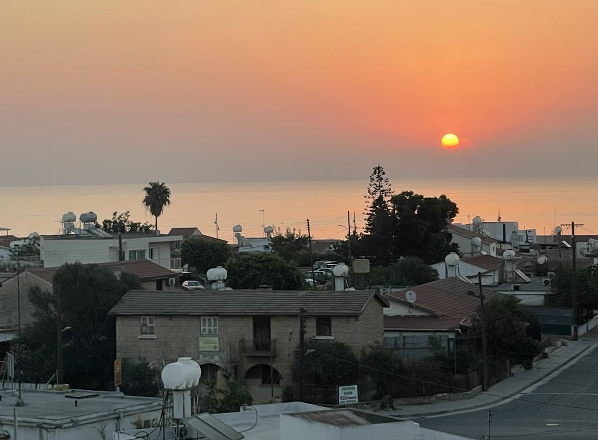 Sluníčko vychází kdesi v dáli, zřejmě nad Bejrútem.
