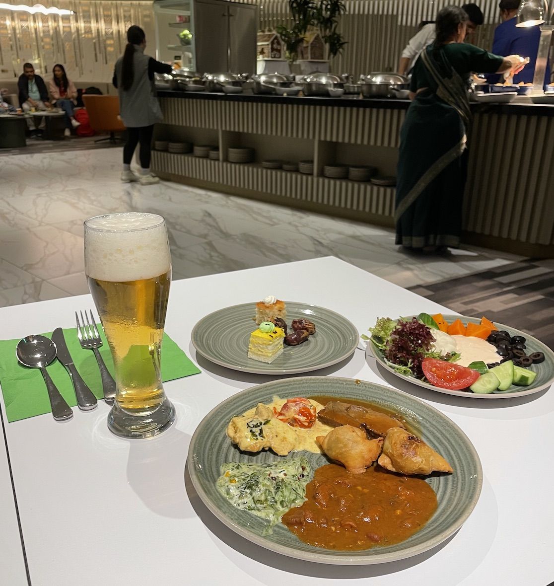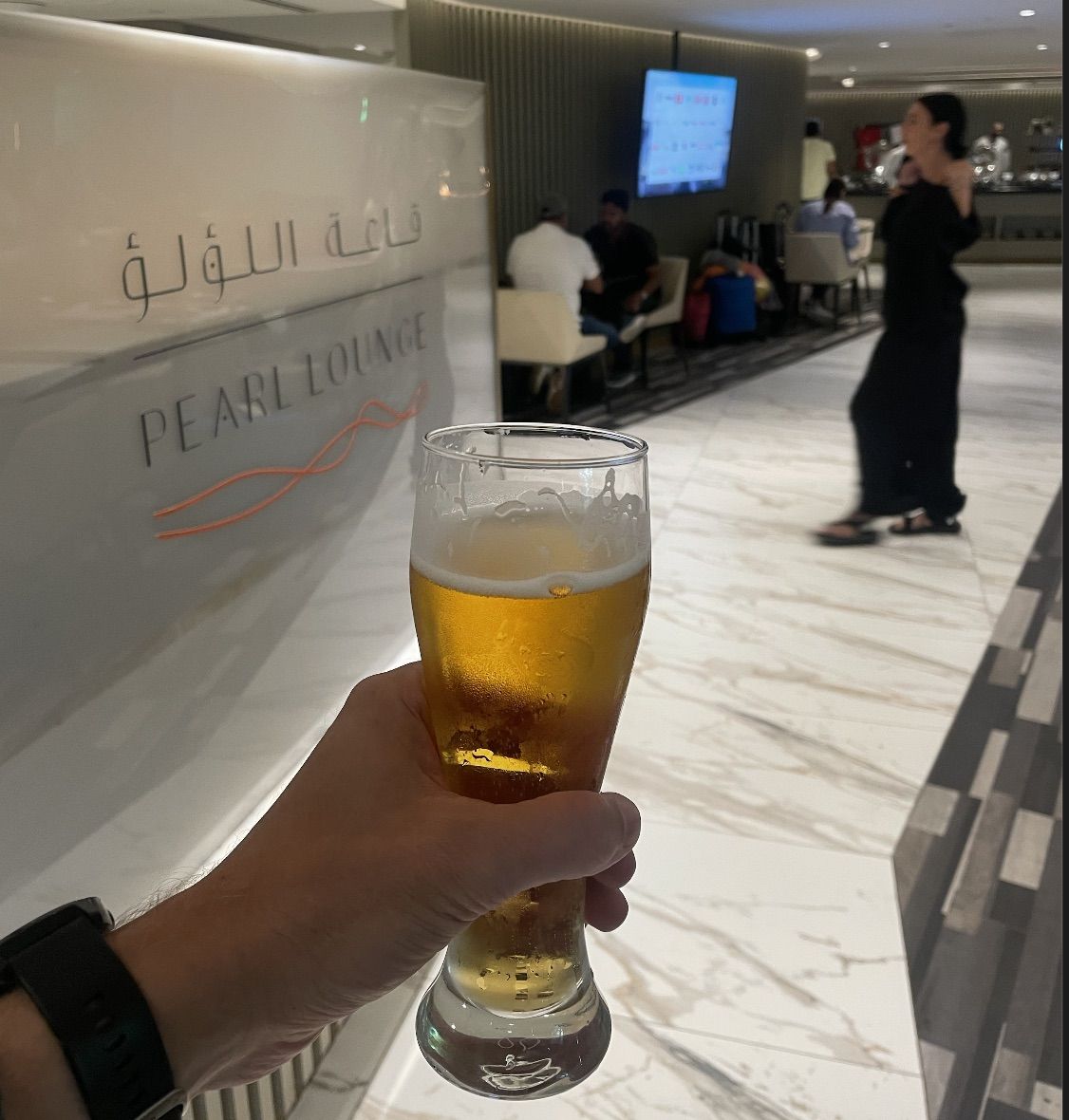 Místní letištní salonek mám rád - výběr teplých jídel, snacků, dezertů, ovoce i zeleniny je tady perfektní. A i přesto, že se jedná o muslimskou zemi, mají tu dokonce i čepované pivo.