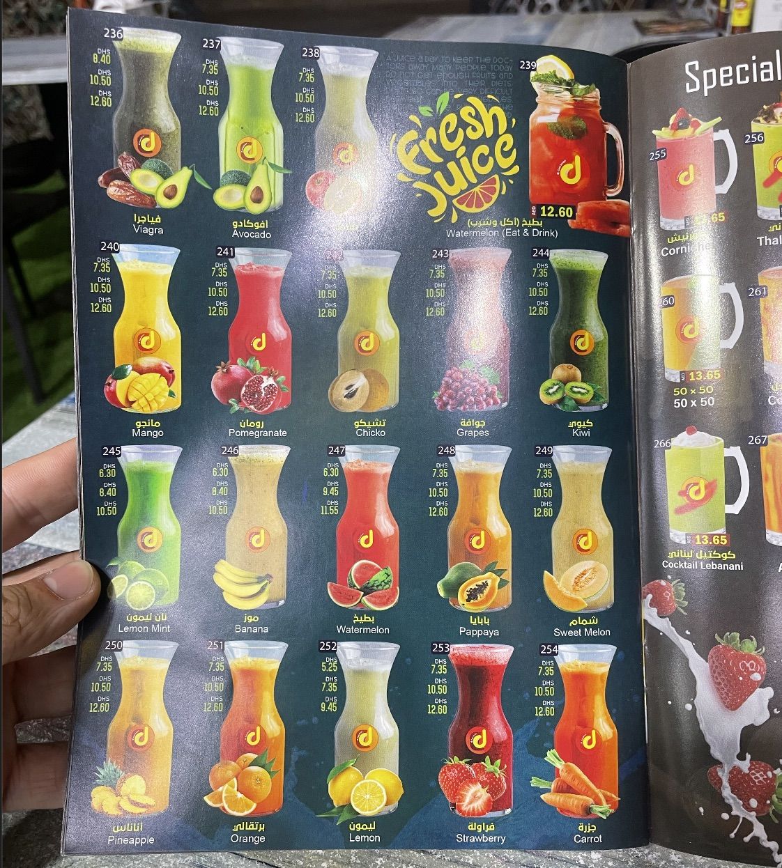 V Abú Dhabí není draze. Například indická kuchyně nebo výborné fresh džusy jsou na každém kroku k dostání mnohem levněji než u nás. (10 AED je necelých 60 Kč)