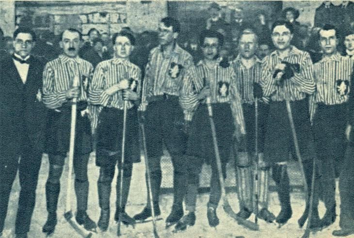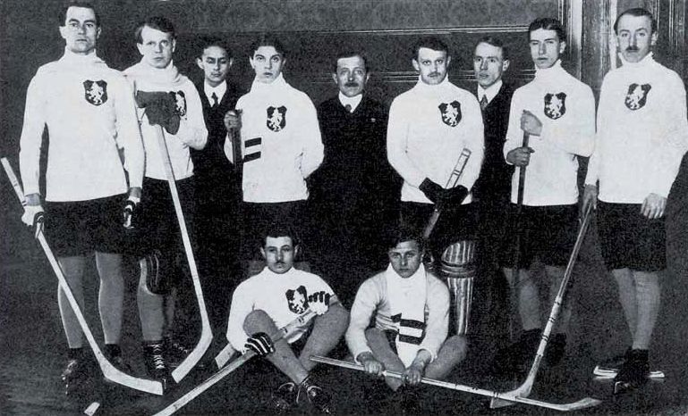 Psal se rok 1909. V kavárně si skupinka mladých sportovních nadšenců se zájmem prohlížela obrázkový časopis, kde byly uveřejněny fotografie kanadských studentů hrajících na ledě hru poněkud odlišnou od té, která se hrála u nás. Kanaďané měli delší hole a na ledě proháněli místo kulatého míčku kulatou destičku. Naši borci takový hokej nikdy předtím neviděli. U nás se hrál bandy hokej s malou hokejkou a míčkem. A právě proto se sportovní hrdinové odhodlali vyzkoušet hru na ledě po kanadském způsobu. Slovo dalo slovo a hoši se přihlásili na mezinárodní turnaj. Ten se konal pod horou Mont Blanc v Chamonix.
