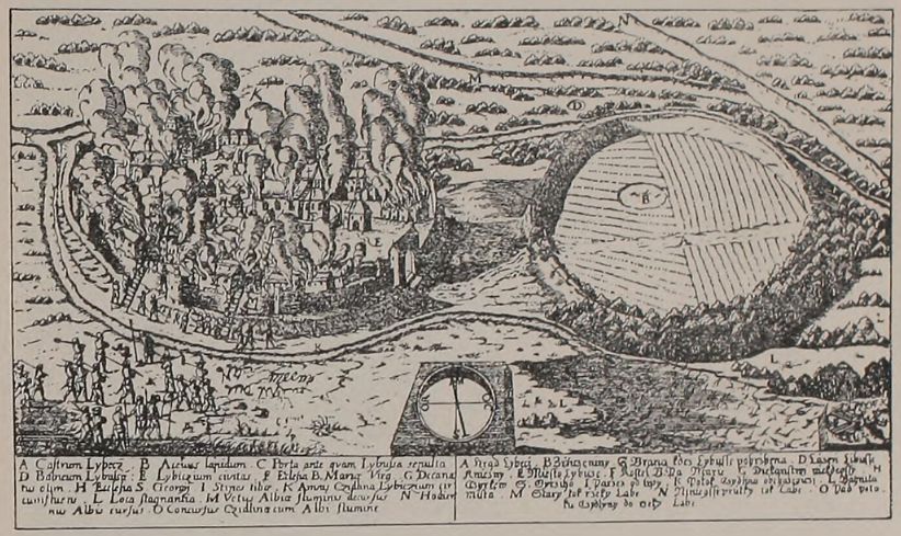 Dobytí Libice nad Cidlinou (kresba v Rosa Bohemica, 1668)