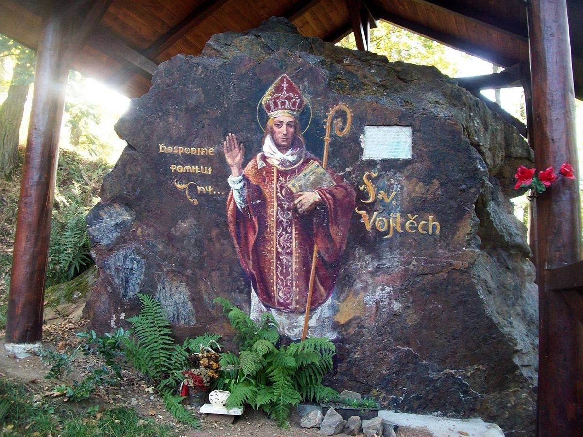 Malba svatého Vojtěcha na vrchu Ticholovec v Příchovicích u Plzně.
