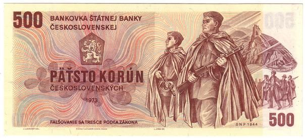 V listopadu 1973 byla dána do oběhu poslední z plánovaných bankovek a sice pětisetkoruna Jaroslava Lukavského. Na líci pětistovky byli zobrazeni bojovníci Slovenského národního povstání, na rubu pak byl hrad Děvín.