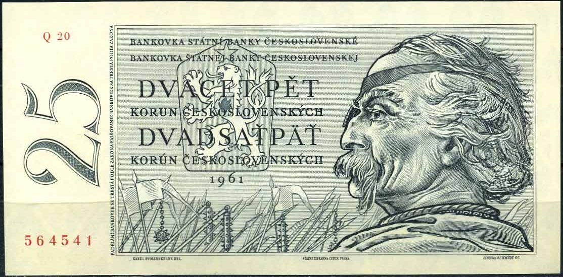 Jako první se v rámci výměny dostala do oběhu pětadvacetikorunová bankovka Karla Svolinského s Janem Žižkou z Trocnova. Husitský vojevůdce byl na lícní straně a Žižkovo náměstí v Táboře na rubu. Tato bankovka nahradila předchozí pětadvacetikorunu vyrobenou v Moskvě, na které byl také Žižka.
