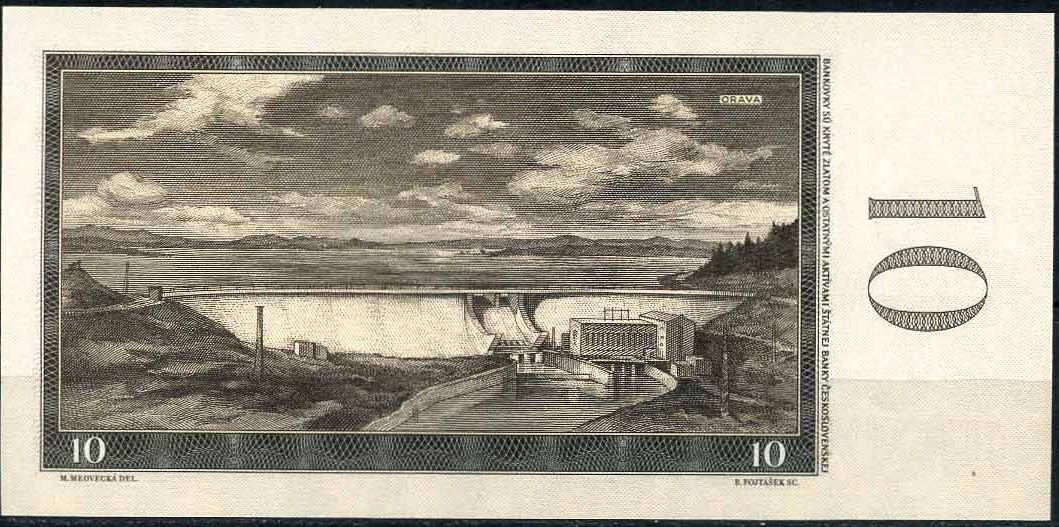 Na začátku šedesátých let se objevila nová hnědá desetikoruna. Její autorkou byla oravská rodačka Mária Medvecká. V návrhu bankovky se snoubily přírodní motivy jejího rodného kraje s obrazy tehdejší doby. Na lícní stranu umístila dvě děvčata. Jedna z nich byla oblečena tradičně s šátkem na hlavě, kdežto druhá byla prostovlasá s pionýrským šátkem kolem krku. V pozadí lícní strany byla zobrazena nižnianská továrna a na rubu Oravská přehrada.