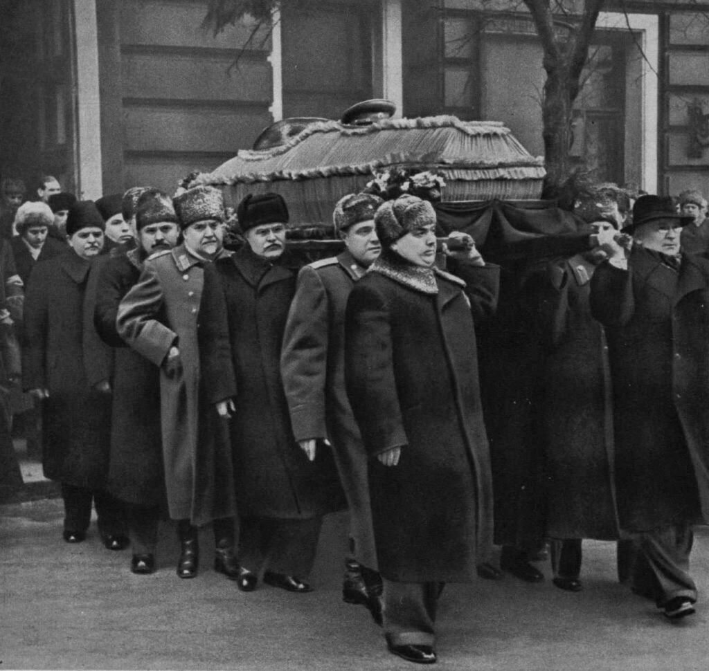 Stalinovu rakev nesli v čele Malenkov a Berija. To byli také největší kandidáti nástupnictví po generalissimovi. Vůdcem se však nakonec stal Nikita Chruščov, jehož schopnosti samotný Stalin zpochybňoval, když říkal, že zemi Sovětů nemůže vést „prostý selský synek“