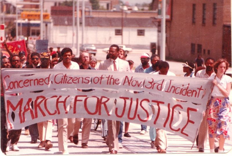 Ticho před pochodem bylo zvláštní. Vnitroblok Morningside Homes se plnil lidmi s transparenty a dětmi na okraji chodníků. Svolal je místní Communist Workers’ Party (CWP). Název akce byl jednoduchý a záměrně provokativní: Death to the Klan. Nebyla to první potyčka toho roku, byla ale tou nejodvážnější. Chtěli ukázat, že se jim už nebude ustupovat.