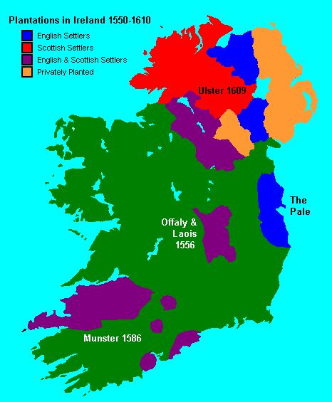Jindřicha vystřídal Eduard a krátce poté přišla královna Marie I., katolička, která se provdala za španělského krále Filipa II. Důležitou součástí Mariiny vlády byl začátek irských plantáží. Půda irských pánů byla konfiskována a předávána Angličanům k osídlení. Marie a Filip neměli děti, takže po její smrti v roce 1558 přešla koruna na její sestru Alžbětu. Anglický parlament si pohlídal, aby Filip nebyl způsobilý.