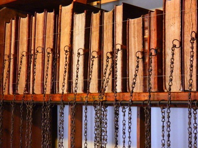 Velká univerzita mohla mít knihovnu třeba o 300 svazcích. Tvoje dnešní mobilní zařízení drží milionkrát víc textu. A aby tyhle poklady nezmizely, knihy se doslova řetězily ke stolům. Ne jako romantická dekorace, ale jako zabezpečení. Ztratit knihu bylo jako přijít o dům nebo pole.
