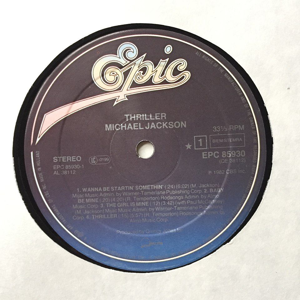Detail labelu vinylového vydání alba Thriller