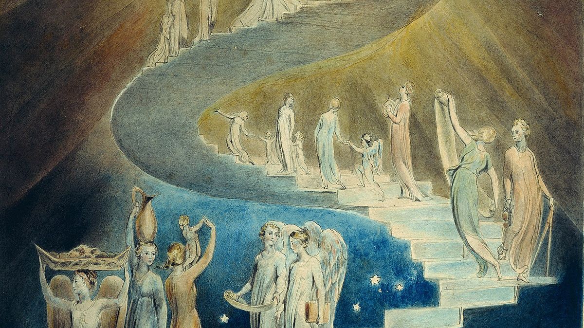 Cesta nahoru: duše stoupá přes různé části oblohy, ty představují jednotlivé stupně svatosti: